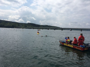 Mit über 730 Schwimmern bei drei Starts gab es für die DLRG verhältnismäßig wenig zu tun. Lediglich 9 Schwimmer brachen die 500m bzw. 1500m Distanzen eher ab und wurden von den Booten aufgenommen und an Land gebracht.