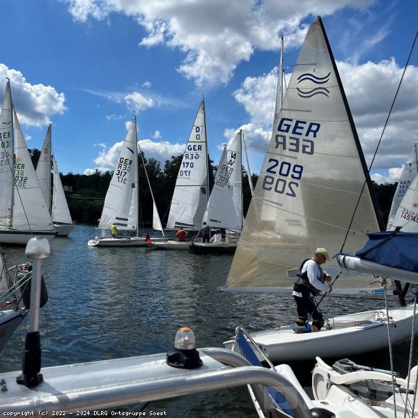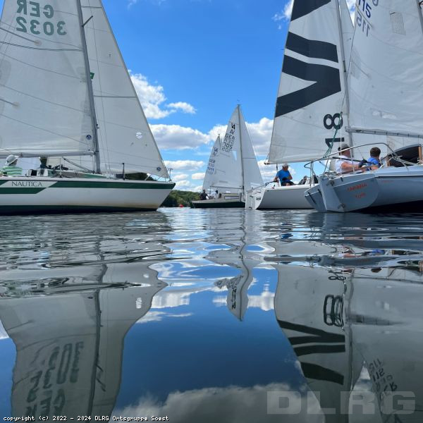 Auch in dem Wamler Becken am Möhnesee gibt es das blaue Band; hier ist dies die Bezeichung für die Clubregatta von "S77M","YSM" und "Yacht Club Wamel Möhne e.V".Gestern unterstützten die Kräfte der DLRG Soest bei traumhaften, wenngleich auch zeitweise recht windarmen Wetter die Segler der drei Clubs bei der Ausrichtung der Regatta sowie beim Auf- und Abbau der Strecke. Nachdem in den vergangenen Jahren nur sporadische Regatten stattfanden, geht es nun wieder so richtig los - bereits kommendes Wochenende steht die nächste Wettfahrt an! Die Ortsgruppe der DLRG Soest wird dabei auch wieder tatkräftig unterstützen, denn nur so kann eine Wasserfreizeit sicher ablaufen!