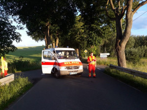 Nach dem Eintreffen des Rettungswagens übernahm die Mannschaft die Absicherung der Unfallstelle, bis der Radfahrer mit dem Rettungswagen und nachgefordertem Notarzt ins Krankenhaus gebracht wurde und übergaben die Unfallstelle mitsamt Fahrrad an die Polizei.