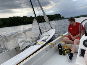 Als problematisch stellte sich das in den Schwertkasten zurückgerutschte Schwert heraus, aufgrund dessen das Segelboot nicht direkt wieder aufgestellt werden konnte.