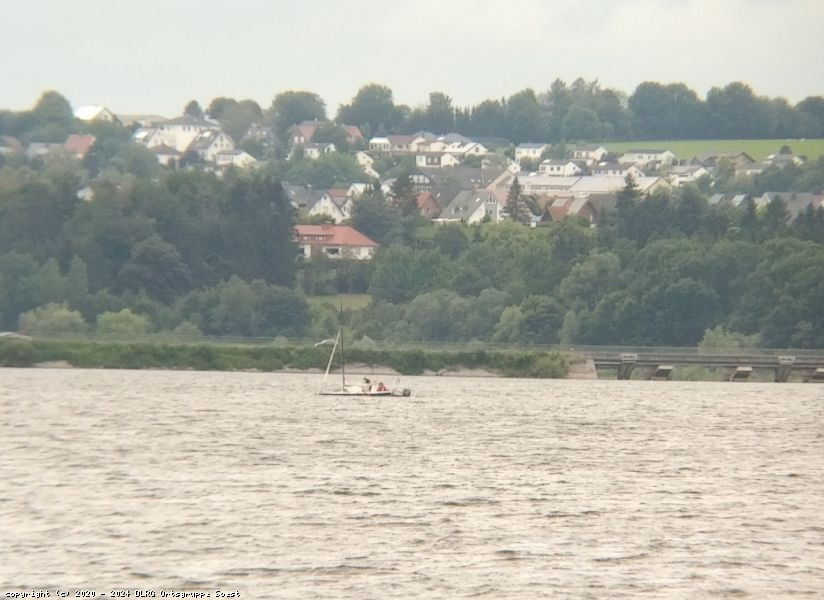 Kurz vor dem Wachschluss gab es gegen 17:30 Uhr einem Einstatz für unsere Wachmannschaft: Ein Segelboot ist durchgekentert und trieb mit dem Kiel nach oben auf dem "Wamler Becken" auf dem Möhnesee.