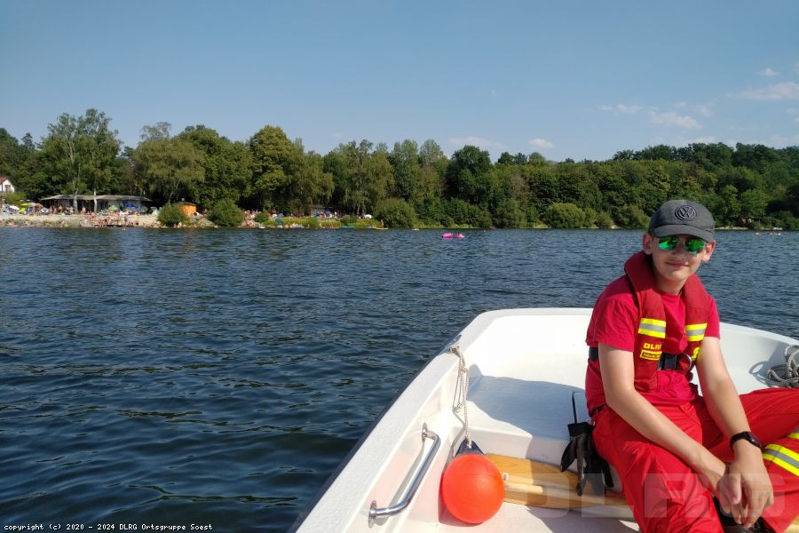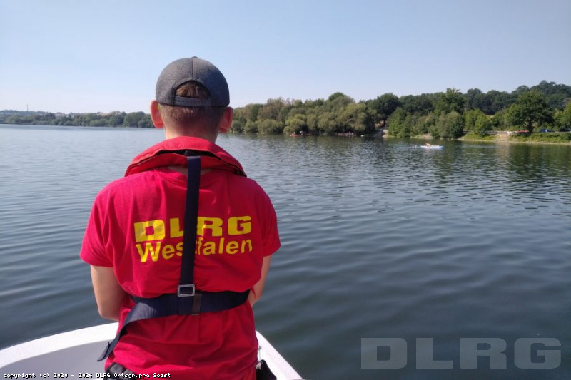 An dieser Stelle wollen wir auf die große Gefahr beim Schwimmen an unbewachten Badestellen hinweisen. In den ersten sieben Monaten des Jahres ertranken laut der Halbjahresstatistik der DLRG mindestens 192 Menschen in deutschen Gewässern. Mindestens vier weitere Badetote gibt es laut dem WDR alleine in NRW an diesem Wochenende bis Samstagabend zu beklagen (Zahlen vom Sonntag sind noch nicht vollständig)! Auch wenn wir die Wachbank dauerhaft besetzt hielten und die Wasserflächen beobachten; dutzende Schwimmer in einer Entfernung von zum Teil über 1,5km zwischen Segelbooten, StandUp-Boards und Schlauchbooten sicher bewachen zu können, ist beinahe unmöglich. Und wenn doch ein Schwimmer in Not gerät, benötigen auch wir mit unserem Motorrettungsboot mehrere Minuten, bis wir am Notfallort eintreffen!