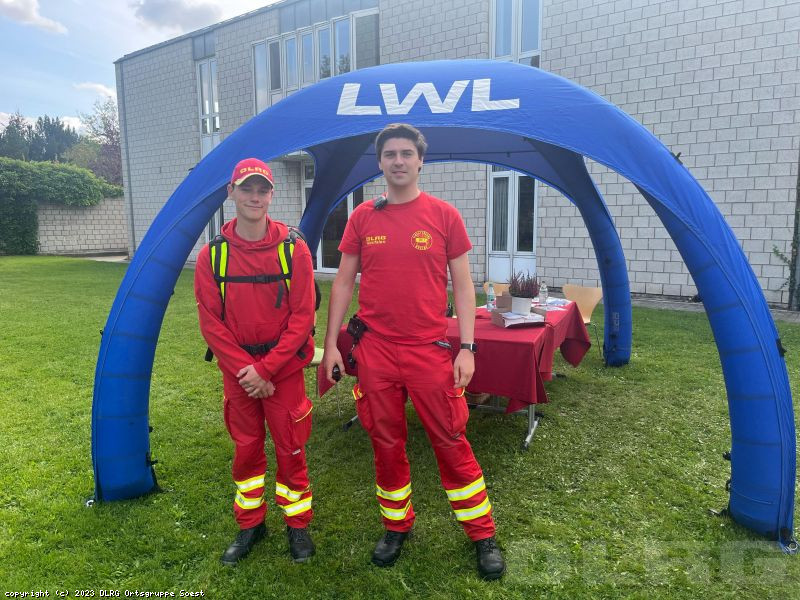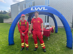 Am vergangen Samstag waren zwei Soester DLRG-Kräfte und unserem Krankentransportwagen für 6 Stunden in Soest beim LWL-Bildungszentrum Soest und sicherten dort den Tag der offenen Tür ab. Neben einiger Gespräche mit Besuchern vor Ort lernten die beiden während der Streifengänge über das weitläufige Geländer auch selber neue Technik zur Unterstützung von sehbehinderten Menschen kennen und probierten einige Dinge aus.