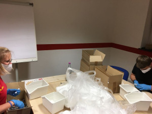 Diese Masken werden in Bausätzen geliefert und unter anderem auch von den Soester Kräften unter entsprechender Schutzkleidung zusammengebaut.