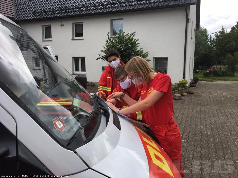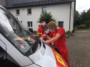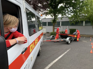 Nachdem der Trupp bereits einsatzbereit war, wurde im Anschluss auf einem Parkplatz eine Kraftfahrerübung durchgeführt. Rangieren nur mit Einweiser und ohne Spiegel stellte sich zunächst als Herausforderung heraus, hat am Ende bei allen hervorragend funktioniert.