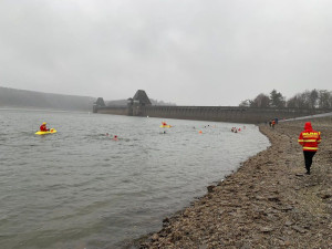 An der Möhnetalsperre wurde das MutigerMann - Anbaden 2019 am Möhnesee abgesichtert und knapp 30 Schwimmer auf der Strecke vom SABE MENTE Möhnesee bis zur Anlegestelle der MS Möhnesee an der Talsperre begleitet.